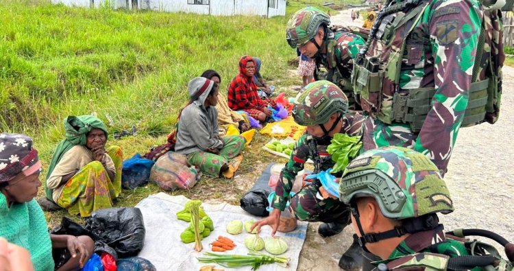Paniai, - Sebagai bentuk nyata kepedulian terhadap perekonomian masyarakat lokal, prajurit Satgas Yonif 711/Raksatama menggelar aksi belanja langsung hasil pertanian dan perkebunan warga di pasar tradisional Distrik Aradide, Kabupaten Paniai pada Sabtu (24/01/2026).